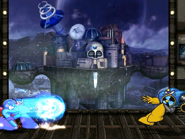 Dr. Wily's Floating Skull Fortress is a variant of Dr. Wily's Castle, though it's not canon to the storyline. It features one of Dr. Wily's Castles floating in the air in the background while the combatants fight in one of Dr. Wily's dropships.