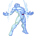 This version of the obligatory Iceman tries to be accurate to Marvel vs. Capcom 2, though it features a six-button layout instead of the source game's four, and two new Hypers that were never seen in the game. However, being a Kong creation, it's no surprise that his Iceman features several inaccuracies and is somewhat buggy, along with featuring somewhat overpowered comboing.