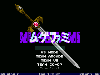 Mugefami (jp. ムゲファミ) is a M.U.G.E.N fullgame that was created by SUGIO during the DOS M.U.G.E.N era, with a majority of the characters being created by either him or MASA. As the name suggests, the game is themed after the Famicom.