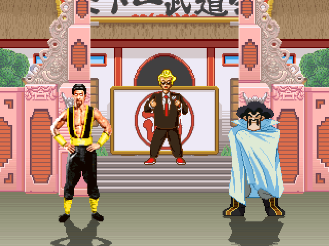 ![]() Shang Tsung and Mr. Satan standing together on Ken Masters' Tenkaichi Budoukai | |